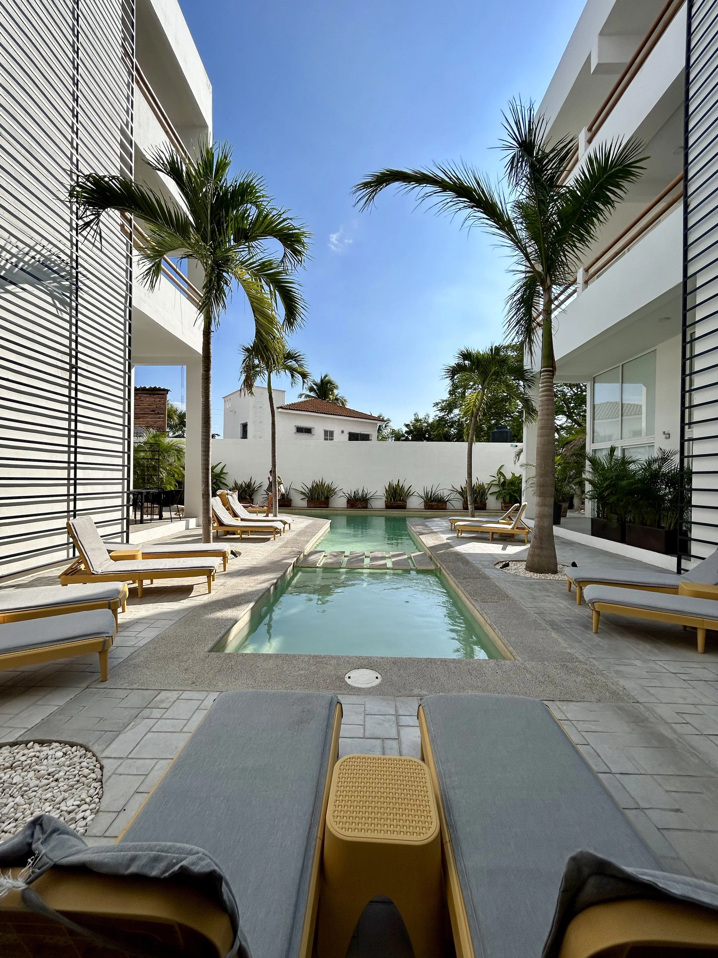 This large studio unit is tucked a bit out of the way on the property. Very private with the largest of the studio unit balconies.